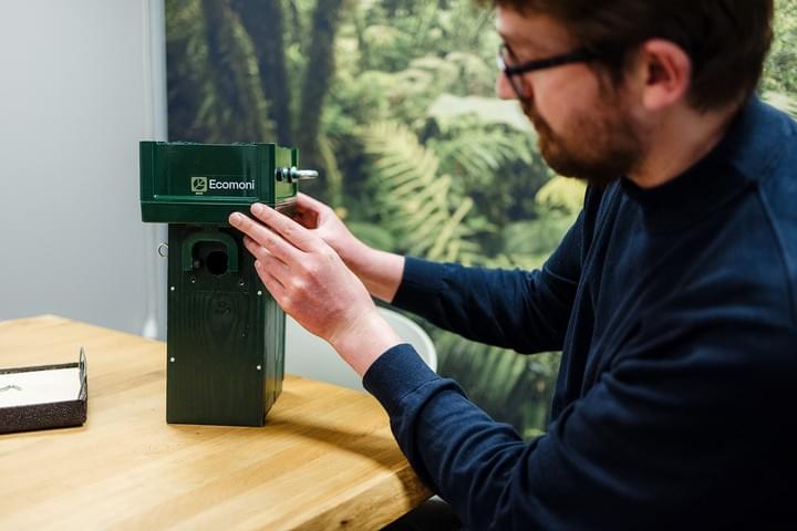 De NestMoni zit vol met hoogwaardige apparatuur. Door de HD camera zien we alles heel goed, door de SIM card hebben we contact en kunnen we hem remote instellen en updaten. Op de Pi-computer die aan boord is kunnen we AI algoritmen laten draaien. De NestMoni is verder geheel plug&play.